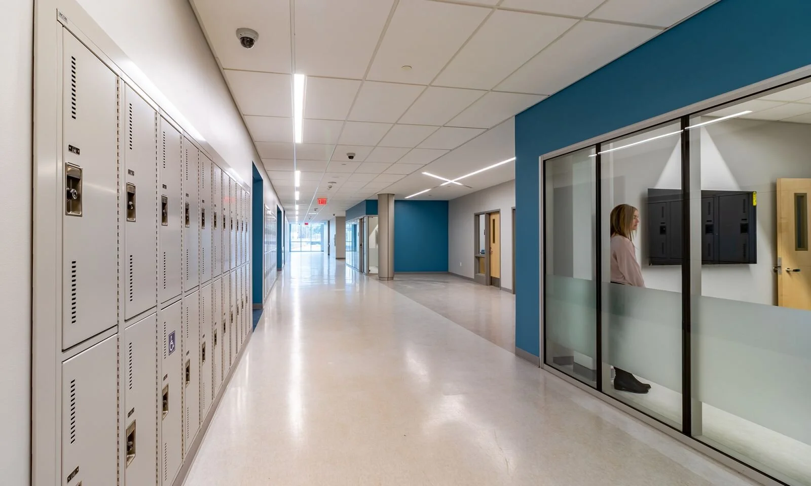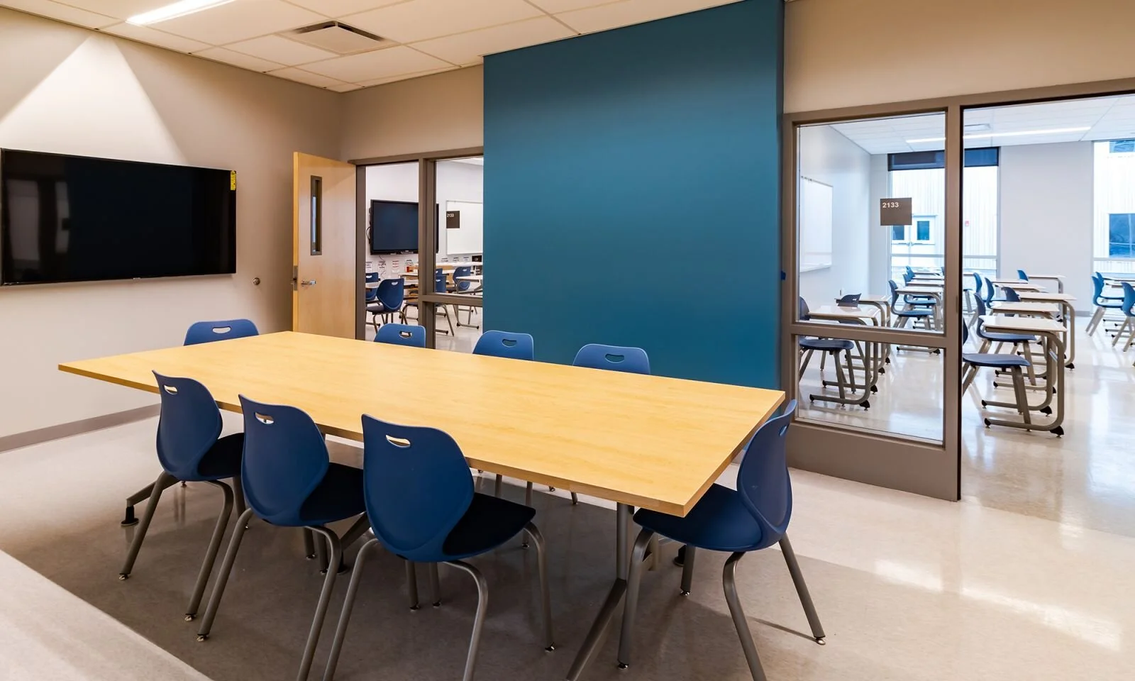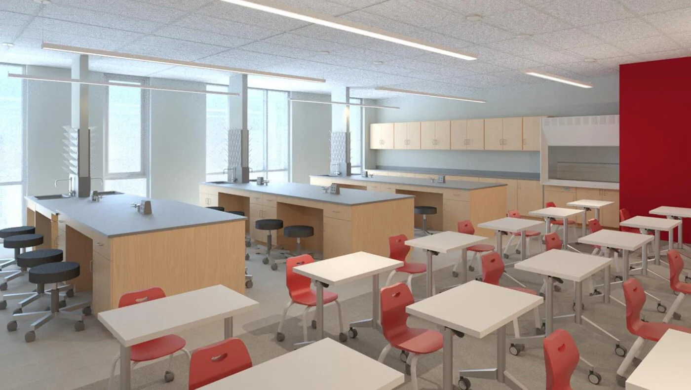 To support the small school concept, each academy includes its own core classrooms, labs and student break-out rooms, along with an academy administrative suite with integrated student support and health services. Additional high school staff and administrative offices located throughout departments provide constant faculty and staff presence strengthening student and staff relationships for those at most risk.